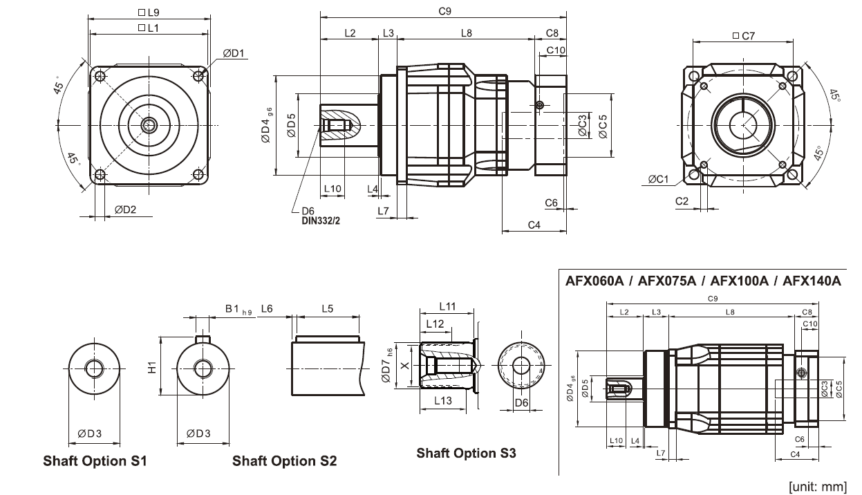 Seria AFX 1-st. Przełożenie i=3~10
